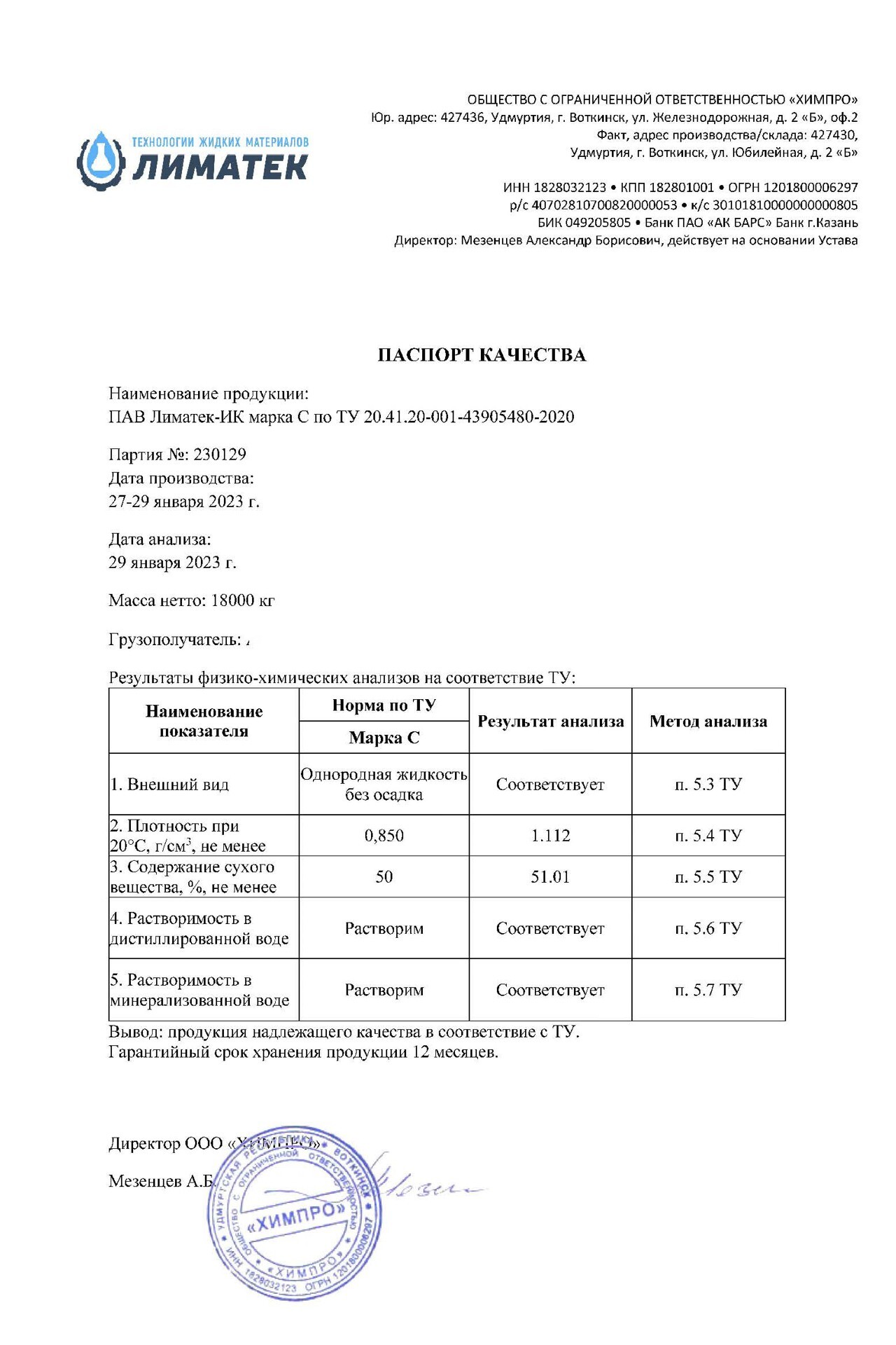 ПАВ Лиматек-ИКМ упаковывают в полиэтиленовые емкости, канистры, контейнеры. Для перевозки автомобильным транспортом продукт загружают в полиэтиленовые бочки вместимостью 227дм3 или в еврокубы.
